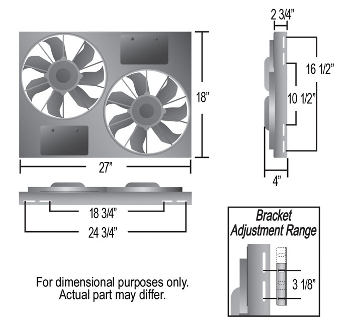 This Dual High Output RAD Fan Powerpack Assembly is part of the HO Aluminum Shrouded Fan Series that is designed with the application in mind. Based on some of the most common radiator core sizes sold today, this unit features an aluminum shroud measuring 27" wide by 18" top to bottom and is only 4" in overall depth to offer an adjustable yet precision fit. The natural, non-finished aluminum shroud gives the user the freedom to polish, anodize, paint, or simply leave it raw to create a truly custom look for an affordable price. The dual 12" high output electric fans are some of the most proven and reliable fans in our line-up. Offering a total of 4000 CFM, this dual electric fan assembly generates the most real-world airflow in the smallest package on the market.