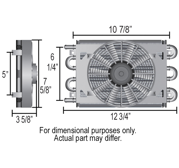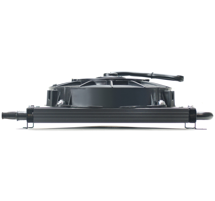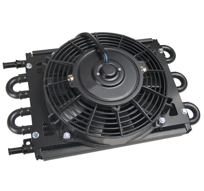 The Dyno-Cool Universal Remote Cooler can be mounted anywhere space permits, using a highly efficient copper tube/aluminum fin cooler and a curved blade fan to provide airflow and extend transmission life. Perfect for medium duty use. Mounting kit not included.
