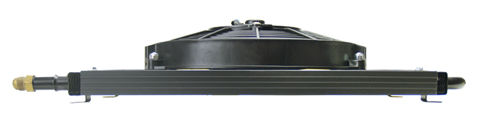 The Dyno-Cool Universal Remote Cooler can be mounted anywhere space permits, using a highly efficient copper tube/aluminum fin cooler and a curved blade fan to provide airflow and extend transmission life. Perfect for medium duty use. Mounting kit not included.