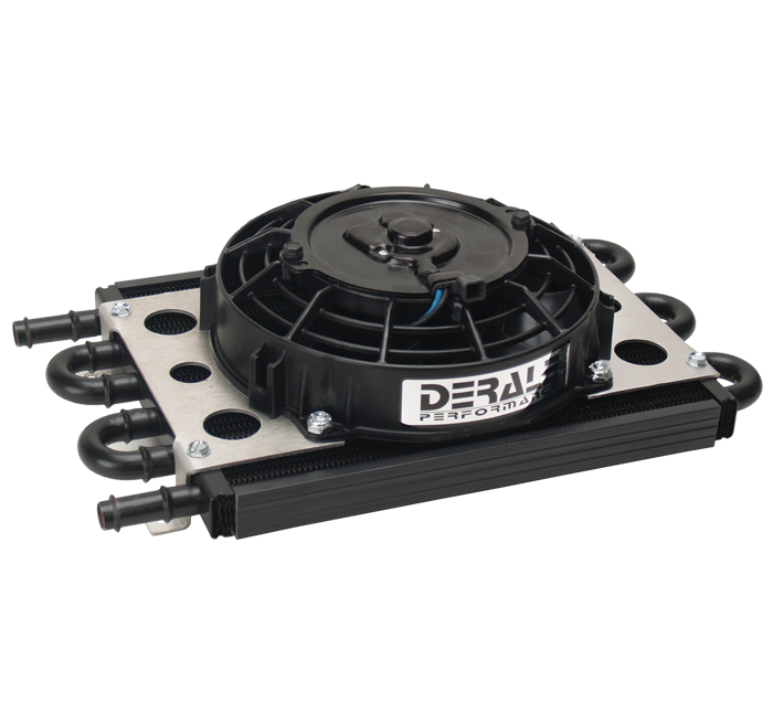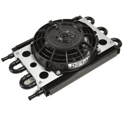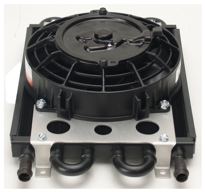 With an efficient copper tube/aluminum cooling fin cooler being supplied air by a 7" Tornado electric fan, this value priced remote cooler comes with 11/32" hose barb inlets and is recommended for light duty towing and hauling or when pulling consistent grades. A great addition to compact cars and smaller SUVs that will add years to the life of a transmission at a reasonable price. Also recommended for power steering and fuel cooling. No mounting hardware included. Made in USA.