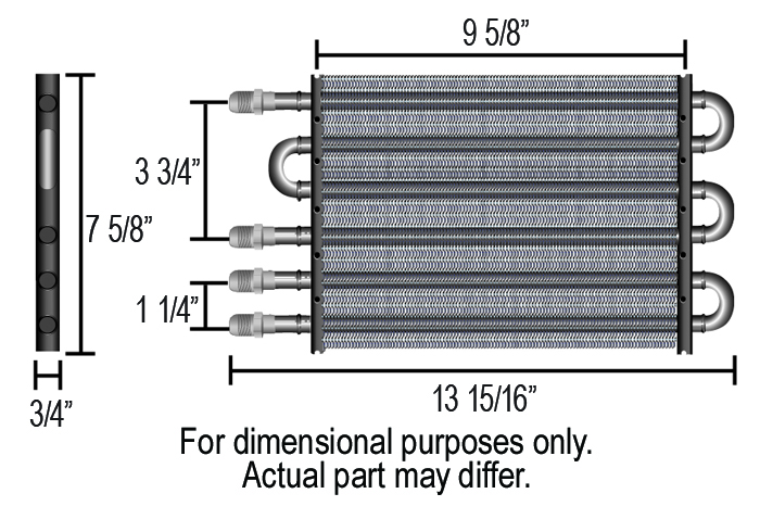 Featuring a free-flowing 4 & 2 pass cooler in one compact package and fabricated of 1/2" copper tubing and aluminum cooling fins, this Made-in-the-USA Dual-circuit cooler includes 4 each -8AN inlets. It provides heat transfer capabilities for two independent systems such as engine and transmission or transmission and power steering at a bargain price.